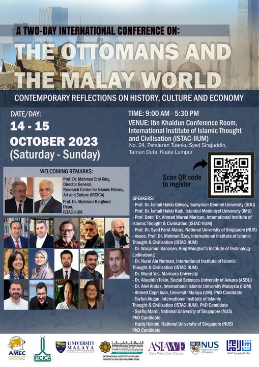 We take great pleasure in informing you that the International Institute of Islamic Thought and Civilization, International Islamic University Malaysia (ISTAC-IIUM), Research Centre for Islamic History, Art, and Culture (IRCICA), Bait Al Amanah, Asian Middle East Centre (AMEC), and Asia West-East Centre (Asia We), in collaboration with Department of Malay Studies, National University of Singapore and Faculty of Arts and Social Sciences (FASS), University of Malaya. will be hosting the two-day conference on “The Ottomans and the Malay World Contemporary Reflections on History, Culture and Economy.”.